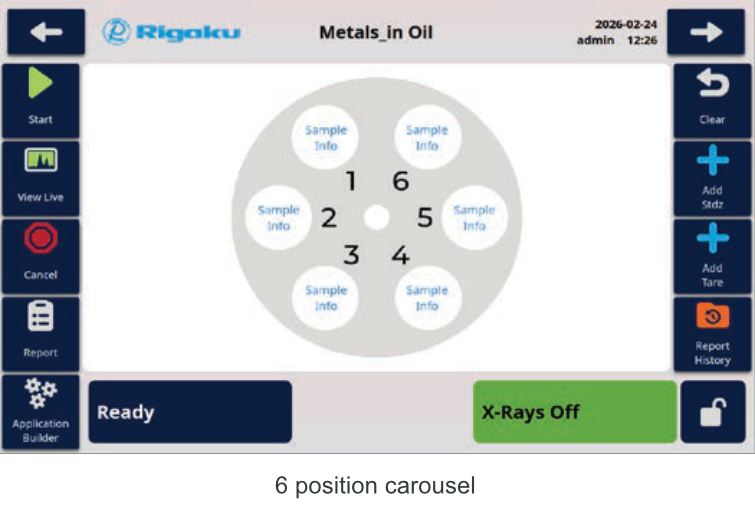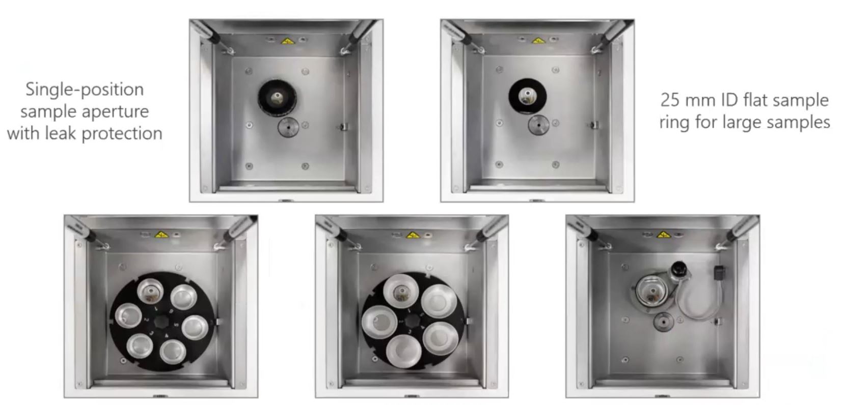 Instrument sample presentation has many options including single large area sample profiling, sample spinning or 5 or 6 sample auto-loader.