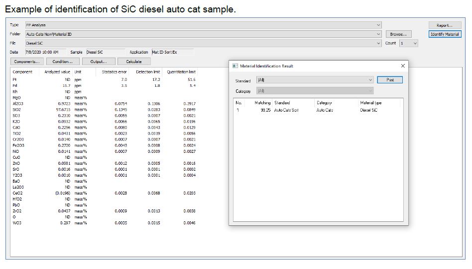 The measurement of Pt, Rh & Pd in recycled automotive catalytic converters can be achieved by using the Fundamental Parameters program to reference a matching library of elemental profiles.