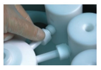 This ensures that HF gases are not released into the microwave cavity and damaging the circuitry and importantly not allowing the vapours to enter the laboratory area.